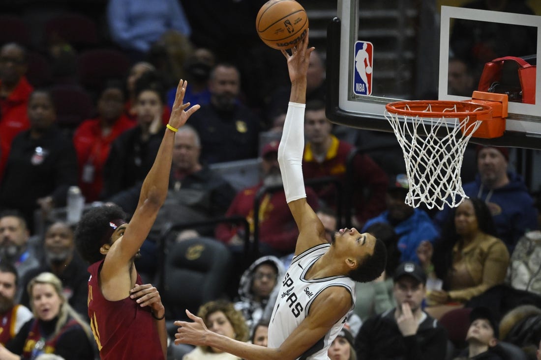 The 7-foot-4 Wembanyama is on a minutes restriction due to an ailing ankle but still racked up 24 points, 10 rebounds and five blocks in 25 minutes during a 117-115 loss at Cleveland on Sunday.