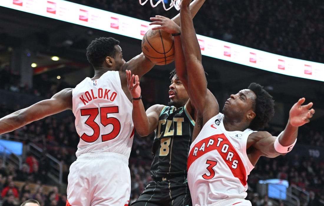 Charlotte’s JT Thor hit a 3-point shot to trim the margin to two points with 3:00 remaining in the third quarter. On the Hornets’ next possession, Thor came back to tie the game on a 10-footer with 2:23 left. Cody Martin’s layup gave Charlotte a two-point lead, but Malachi Flynn’s 3-pointer put Toronto ahead by one, and the Raptors went on to lead 96-94 after three quarters.