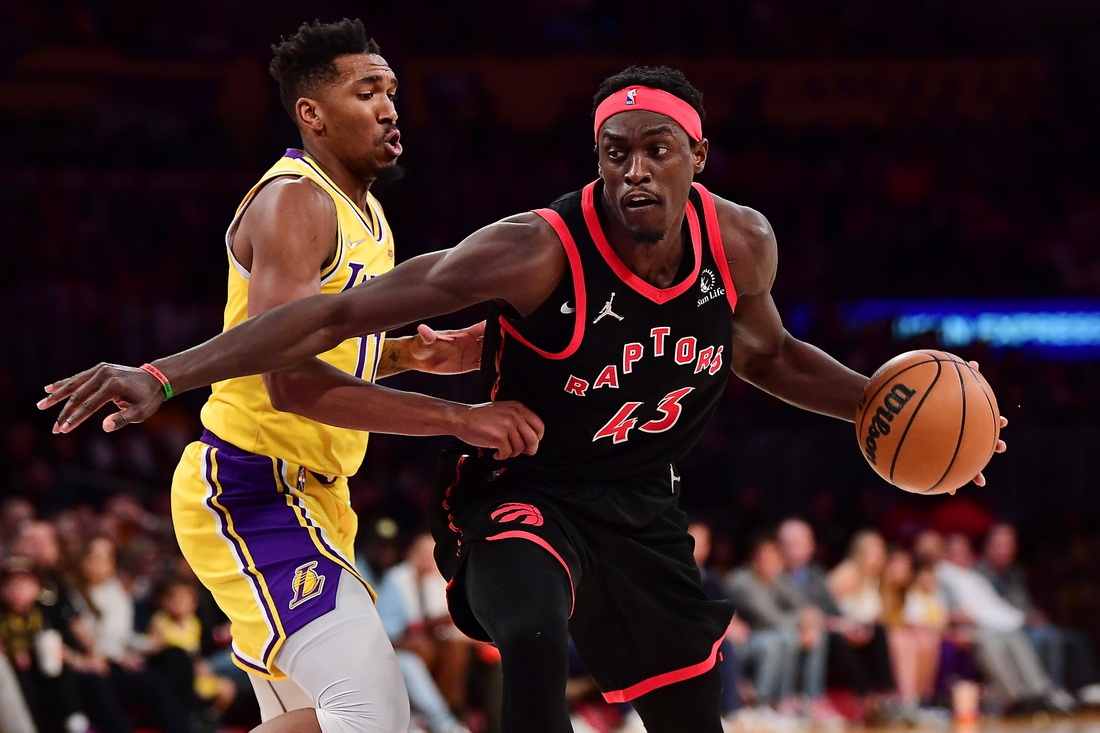 Pascal Siakam had 27 points and 11 rebounds and the visiting Toronto Raptors led all the way to defeat the Los Angeles Lakers 114-103 Monday night.