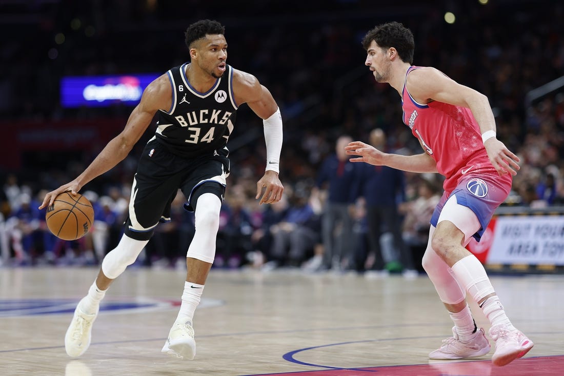 Antetokounmpo collected a defensive rebound, his ninth overall, with 10 seconds remaining in Milwaukee’s 117-111 win over the Washington Wizards.