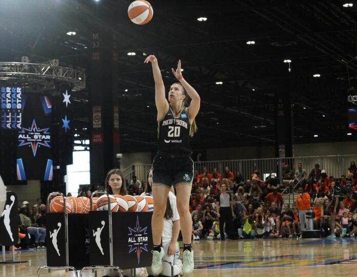 Such a contest would pit the NBA’s all-time leader in 3-pointers made against the New York Liberty star, who shot 44.8 percent from long distance last season.