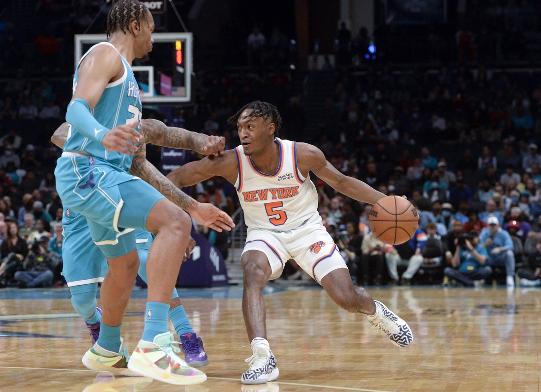 RJ Barrett scored 30 points and the New York Knicks used hot shooting to set the tone en route to a 121-106 victory over the host Charlotte Hornets on Wednesday night.