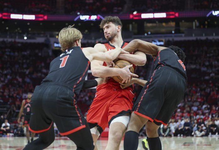The Rockets’ lead was short-lived. Quickley struck again with another 3-pointer that helped the Raptors seize a 42-37 halftime lead. The teams combined to shoot 6 for 40 from behind the arc in the first half.
