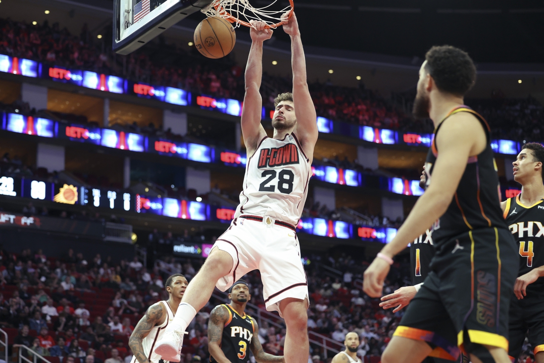 Booker responded to the Suns’ seven-point deficit with a driving layup and pullup jumper that pulled the visitors to within 37-34 early in the second. However, the Rockets managed to keep Phoenix at bay throughout the period.
