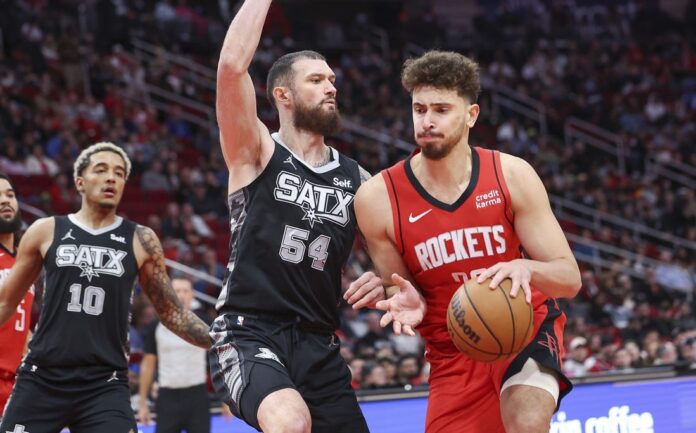 After knotting the score at 53-53 on two free throws by Johnson with 10:30 left in the third quarter, the Spurs strung together three empty possessions before the Rockets fashioned a response with back-to-back 3-pointers from Sengun and Smith. When Aaron Holiday buried a 3 at the 2:55 mark of the period, the Rockets reclaimed their double-digit margin at 69-59.