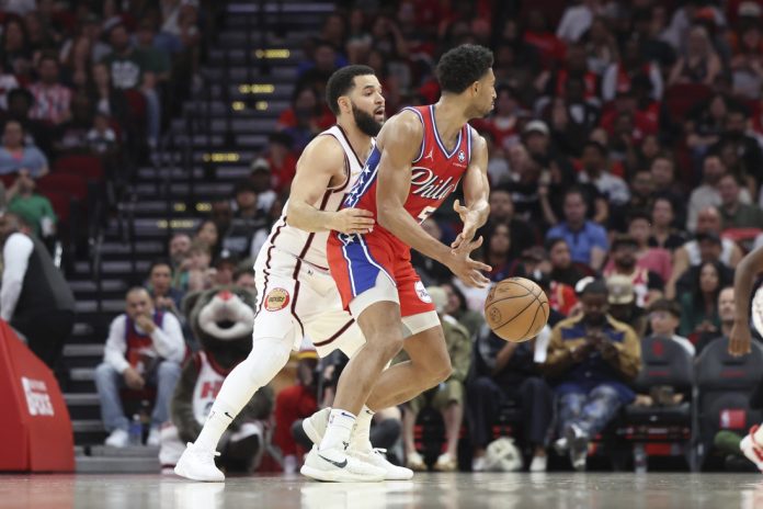 After leading by 21 at halftime, Philadelphia continued its momentum into the third quarter with 3-pointers by Edwards and Ricky Council IV giving the 76ers an 88-63 lead and prompting Houston’s timeout less than two minutes into the period.