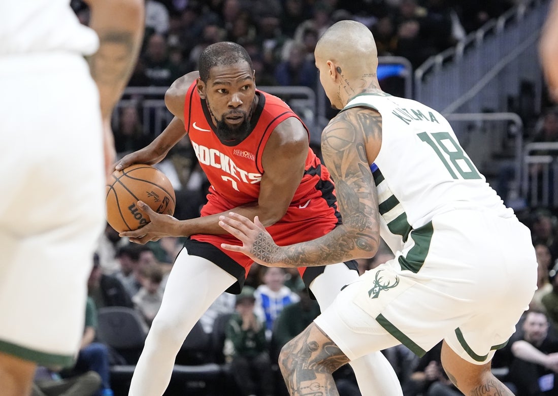 Kevin Durant paired 31 points with seven assists and took over down the stretch as the Houston Rockets rallied from a 14-point deficit and defeated the host Milwaukee Bucks 122-115 on Sunday.