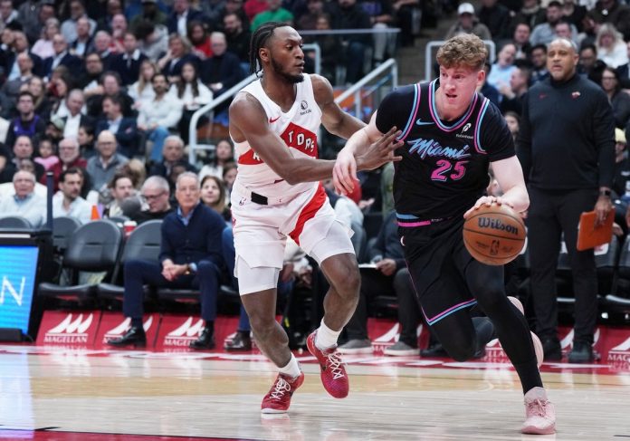 Toronto made five 3-pointers in the opening quarter and took a 32-27 lead into the second. A pair of Bam Adebayo free throws gave Miami a two-point edge before Barrett’s three-point play punctuated a 12-2 run to give the Raptors a 46-38 lead.