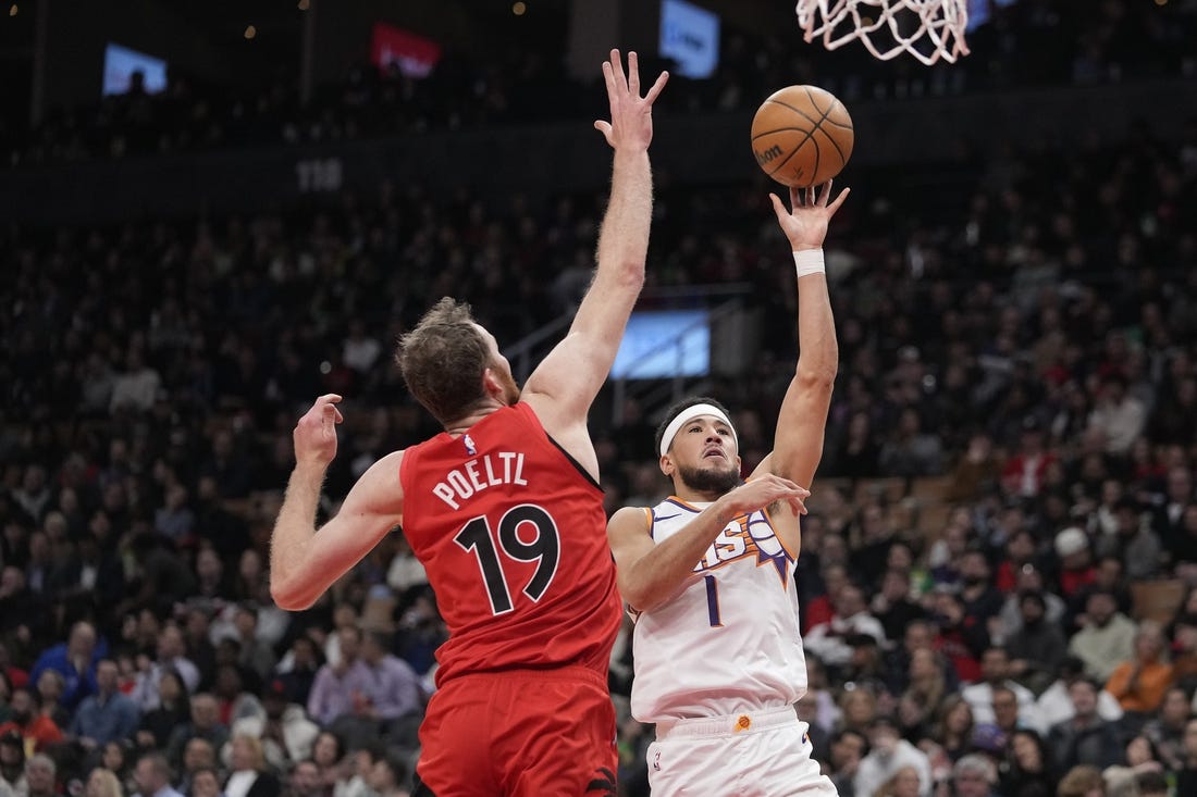 Toronto opened a 12-point advantage with 2:28 to play in the first half on Siakam’s layup and free throw. Booker completed the first-half scoring by making two free throws to trim Toronto’s lead to 60-53.