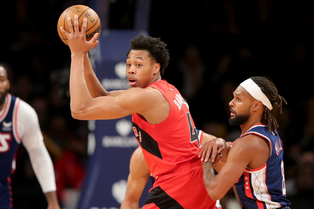 Barnes missed his first shot of the night when he missed a layup with 7:08 remaining but Toronto held a 100-69 lead into the fourth after Achiuwa hit a 3-pointer with 39.6 seconds left.