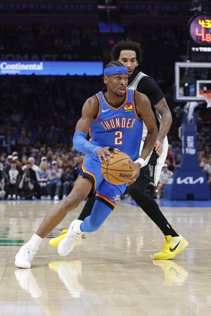 Jalen Williams scored 20 for the Thunder on 9-of-15 shooting, while Alex Caruso scored 13 off the bench.