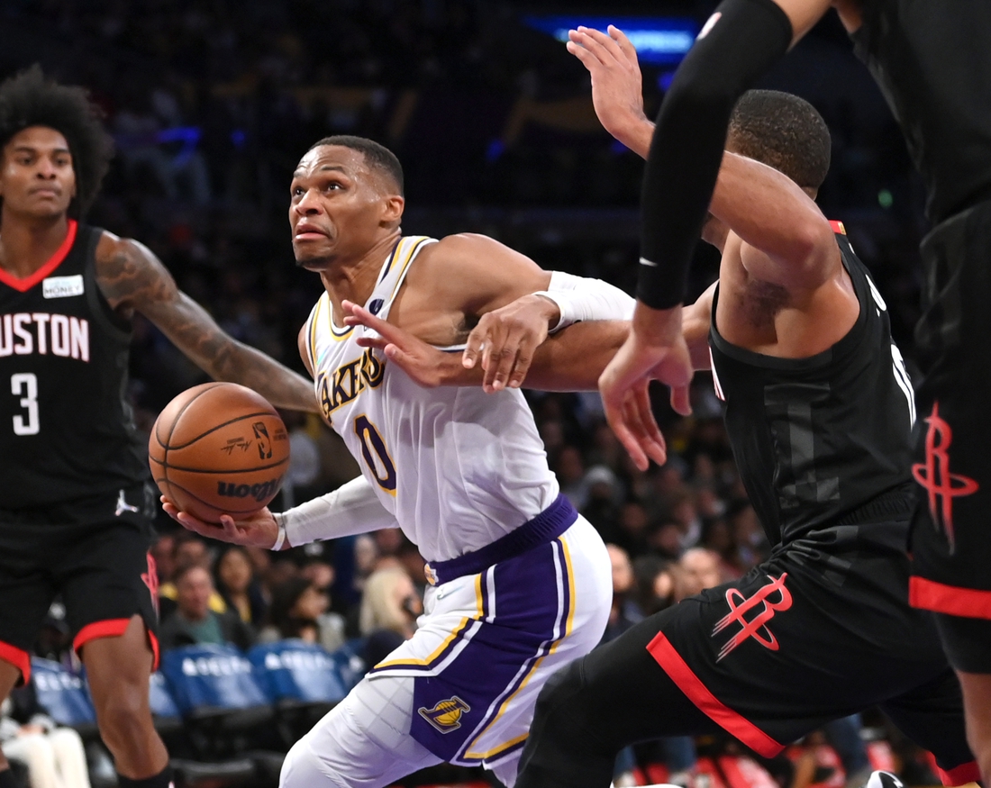 Russell Westbrook contributed 20 points, nine assists and eight rebounds to the win. He has averaged a triple-double — 18.3 points, 10.7 rebounds and 10.3 assists — in three games against the Rockets since they dealt him to Washington after the 2020 season.