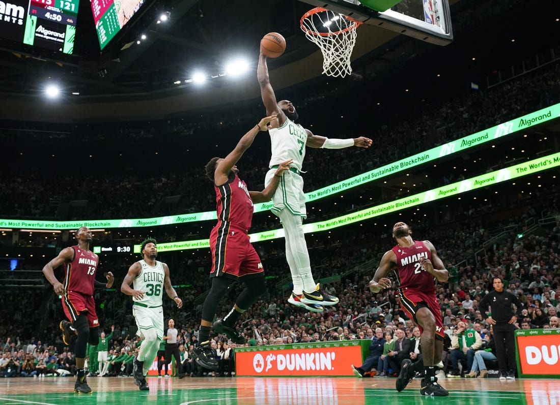 With Tatum steering the ship offensively, Boston is leading the NBA in scoring (121.9 points per game). The Celtics will look to keep their prolific offense rolling against one of the league’s better defensive teams — the Heat are holding opponents to 110 points per game despite Wednesday’s outcome — and close out a perfect six-game homestand.