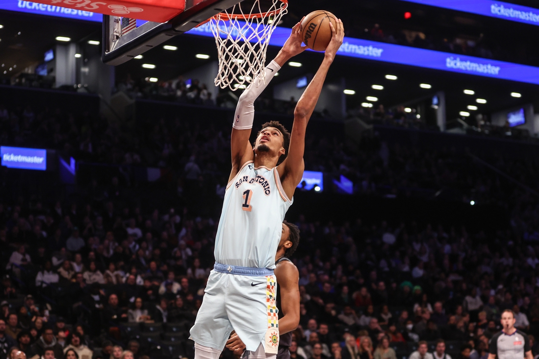Wembanyama sat for the rest of the third and the Spurs took a 74-62 lead into the fourth. The Spurs began putting the contest away in the opening portion of the fourth without a basket from Wembanyama as consecutive layups by Sochan and a trey by Champagnie opened an 87-70 lead with 7:03 remaining.