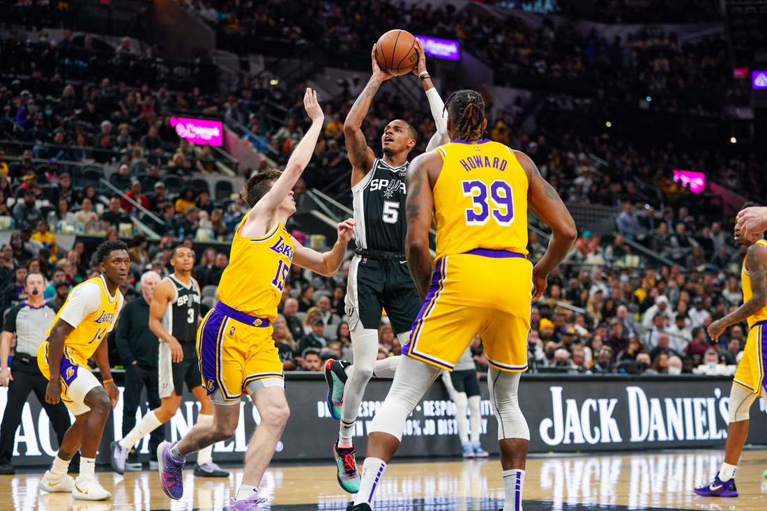 Dejounte Murray collected 26 points, 10 rebounds and eight assists as the San Antonio Spurs held off the short-handed, visiting Los Angeles Lakers 117-110 on Monday to help their chances for a postseason berth.
