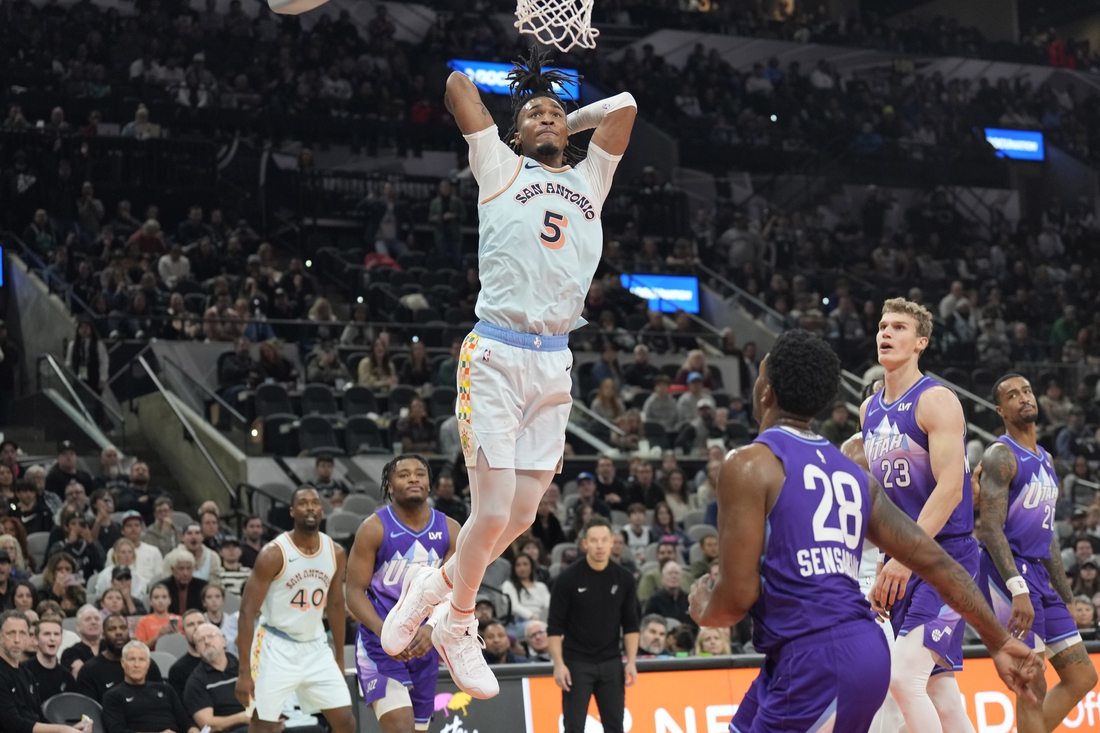 The Spurs followed a 110-104 victory over Oklahoma City on Tuesday with a 126-118 win over Utah on Thursday. Harrison Barnes had 25 points and 10 rebounds to lead San Antonio past the Jazz, while Zach Collins and Stephon Castle had 18 points each.