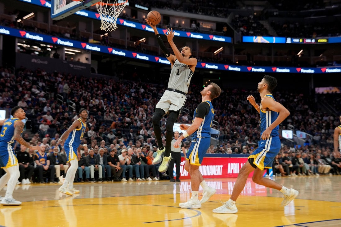 Wembanyama is sidelined one night after producing 41 points, 18 rebounds and three blocked shots in San Antonio’s 127-113 road victory over the Golden State Warriors.