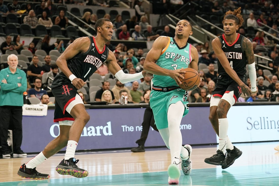 The Spurs led by three points after a Johnson dunk at the 2:45 mark of the first quarter before Houston rallied to score the period’s final eight points at take a 29-24 advantage after one.