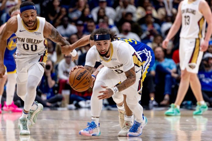 The Pelicans scored the first seven points of the game as Brown and Alvarado combined for 14 points to give New Orleans a 14-2 lead. Moses Moody and Podziemski made consecutive layups, but New Orleans increased the lead to 10 points twice.
