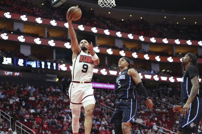 Orlando capitalized on the Rockets’ early issues with ball security, turning four turnovers into five points and a five-point lead that eventually swelled to 19-10 on a Banchero 10-footer at the 4:20 mark of the first period.