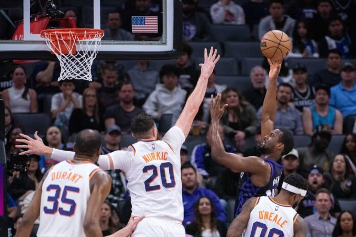 Jusuf Nurkic split two free throws with 8.7 seconds left and the Phoenix Suns pressured Sacramento’s De’Aaron Fox into a late turnover as they produced a vital 108-107 victory over the host Kings on Friday night.