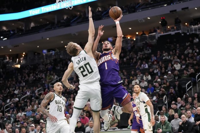 Devin Booker scored 27 points and dished seven assists while leading the Phoenix Suns to a 129-114 victory over the host Milwaukee Bucks on Tuesday night.