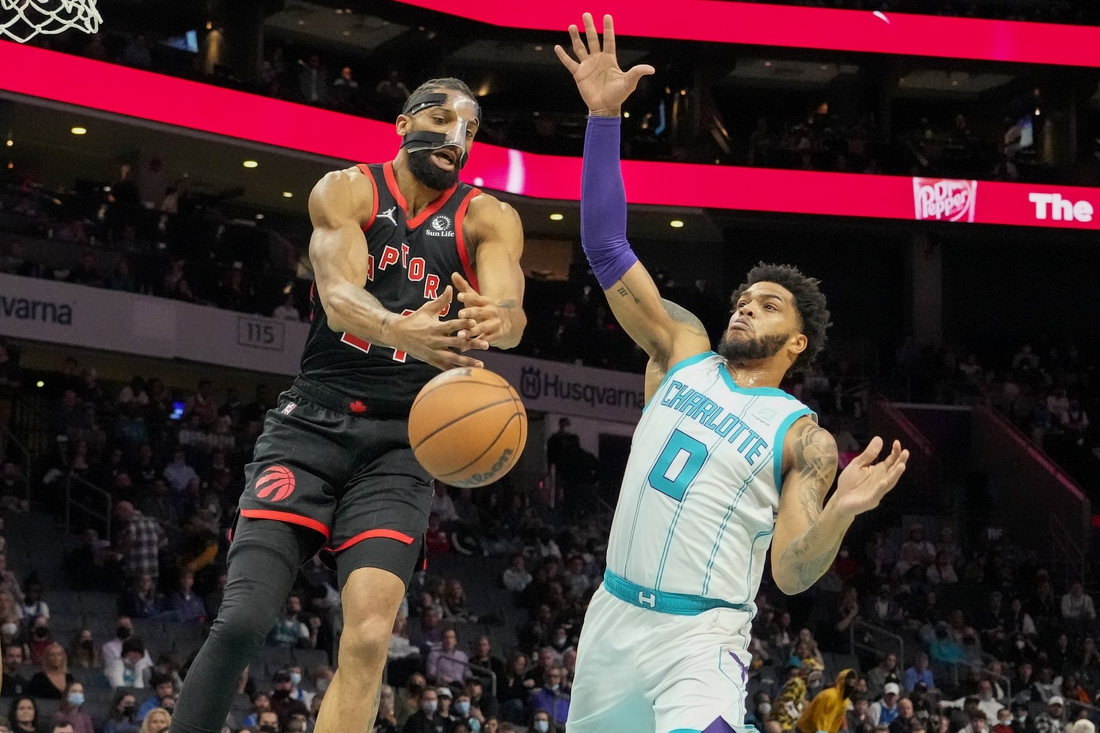 Toronto was without OG Anunoby (fractured finger). Charlotte was without Gordon Hayward (ankle), Jalen McDaniels (ankle) and Nick Richards (foot).