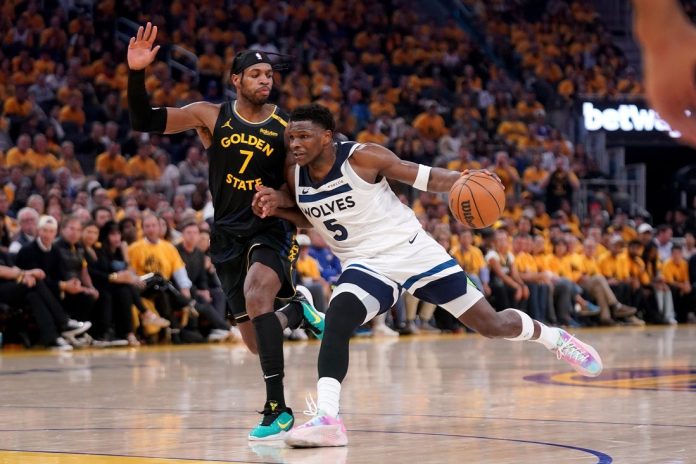Warriors coach Steve Kerr said of Edwards’ third-quarter charge, “Ant got going and we decided to go to a bigger lineup … just to try to slow them down and slow Ant down. And obviously it didn’t work. They kept scoring, and we couldn’t score.”