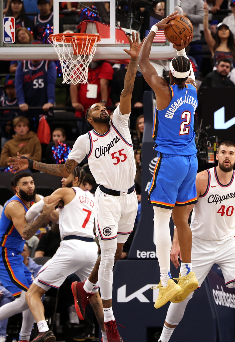 The Clippers turned a productive first quarter into a 34-24 lead before the Thunder responded with a 33-point second quarter to take a 57-51 halftime lead. Gilgeous-Alexander scored 17 points in the half.