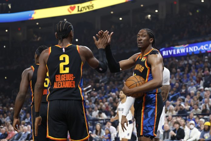 Jalen Williams added 27 points for Oklahoma City while Luguentz Dort had 18 and Dillon Jones scored 12.