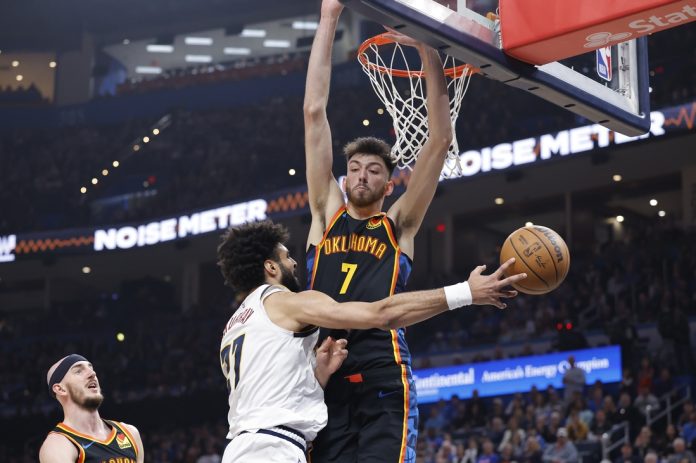 After beating Portland on Friday without any of its usual starters, all five returned for Oklahoma City. Chet Holmgren contributed 14 points, eight rebounds and four blocks, while Isaiah Hartenstein had 10 points and 11 boards.