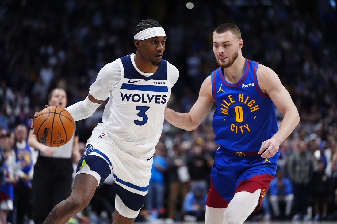 Murray had a driving dunk out of timeout and hit a floater in the lane over Hyland to give the Nuggets some life. A turnover gave them a chance to cut deeper into the lead but a bad pass led to a Gobert dunk and Edwards hit a contested 3-pointer to make it 109-96 with 5:52 left, and the Timberwolves closed it out.