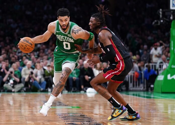 Tyler Herro sank six of Miami’s franchise-playoff-record 23 3-pointers as the Heat evened their Eastern Conference first-round playoff series with the Boston Celtics by earning a 111-101 road victory in Game 2 on Wednesday night.
