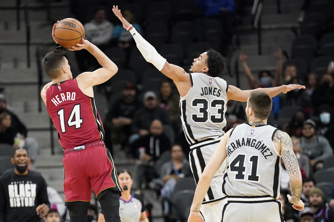 White led all scorers with 19 points in the first half. Herro paced Miami with 10 points as the Heat outshot San Antonio 54.8 percent to 34.1 percent.