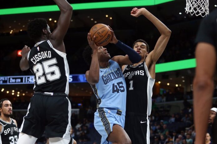 The Spurs tied the game at 37 when Champagnie scored on a running dunk with 6:19 to play in the second period. Memphis scored eight of the next 11 points to go up by five after a dunk by Jemison at the 2:50 mark before settling for a 49-48 lead at the break.
