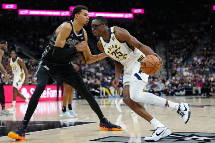 McConnell kept up his hot pace, as his pullup jumper with 6:30 left in the second quarter brought the Pacers within 37-31. San Antonio rebuilt its advantage to 10 points on three occasions in the period, the last on Sochan’s layup at the 3:08 mark. Indiana swung back, pulling within one before Wembanyama poured in a 3-pointer to grant the Spurs a 52-48 edge at the break.
