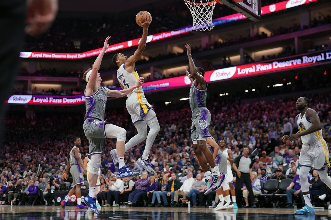 In taking a 3-2 lead in the first-round series, the Warriors not only canceled Sacramento’s postgame purple beam-lighting celebration, but also moved within one win in the best-of-seven series from advancing to the Western semifinals against either the Memphis Grizzlies or Los Angeles Lakers.