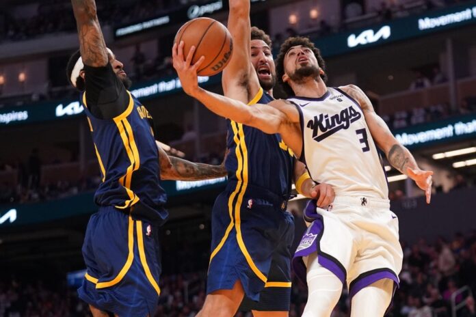 Curry shot 4-for-10 on 3-point attempts en route to his team-high point total, but his teammates hit just 7 of 21 from long distance. The Kings, who were playing without guard De’Aaron Fox (right ankle), matched the Warriors’ 33 points from beyond the arc.