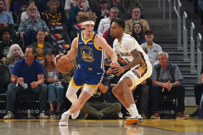 Buddy Hield had 21 points to lead six scorers in double figures, Brandin Podziemski nearly recorded a triple-double as Stephen Curry’s replacement, and the Golden State Warriors pulled away from the visiting New Orleans Pelicans for a 104-89 victory Wednesday in San Francisco.