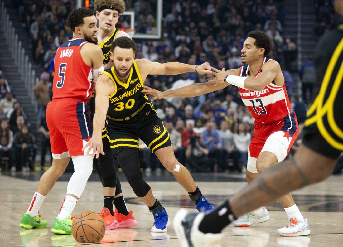 Jordan Poole responded to a nice pregame reception with a team-high 25 points in his return to San Francisco, but Stephen Curry countered with 30 and rookie Trayce Jackson-Davis notched a second straight double-double as the Golden State Warriors ran off from the visiting Washington Wizards for a 129-118 victory Friday night.