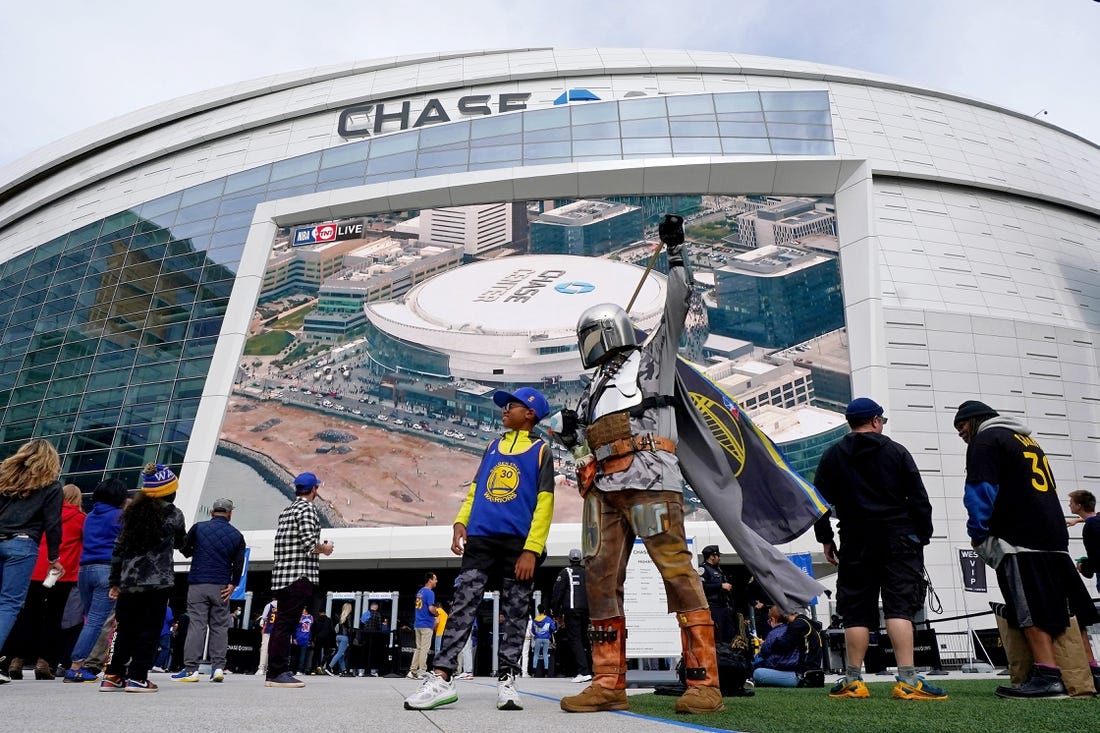 The Warriors’ 18,000-seat Chase Center, near the edge of the San Francisco Bay, opened in 2019, replacing Oakland’s Oracle Arena.