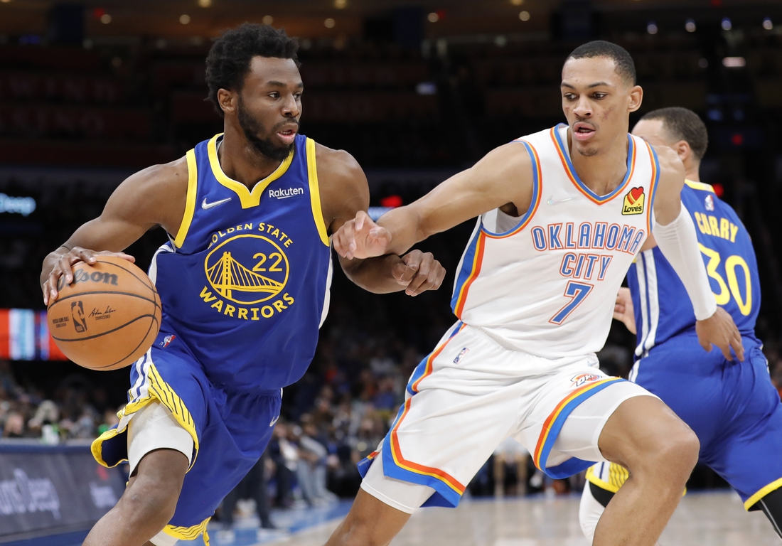 Klay Thompson scored 21 points to lead the Golden State Warriors to a 110-98 win over the Oklahoma City Thunder on Monday in Oklahoma City.
