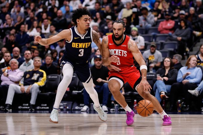Westbrook’s fadeaway jumper got Denver within 40-32 midway through the quarter. Whitmore had a dunk, Dillon Brooks drained a 3-pointer and Thompson scored on a layup to put the Rockets up 47-32.