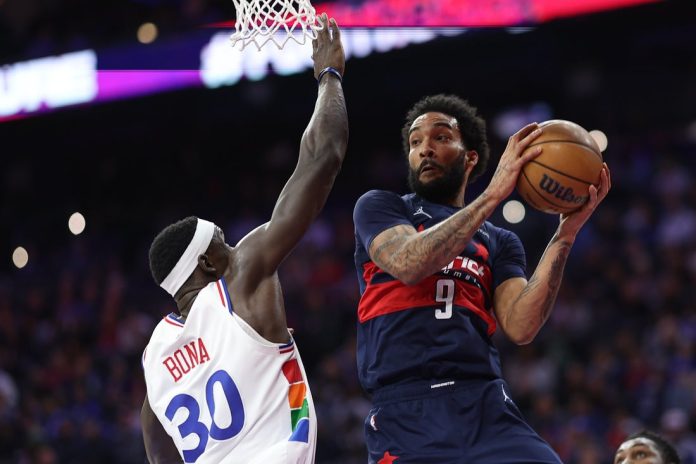 A layup by Justin Edwards drew Philadelphia within 78-71 before Washington scored the next 11 points. Sarr’s 3-pointer created a 12-point advantage before Poole knocked down back-to-back 3-pointers to push the lead to 89-71.