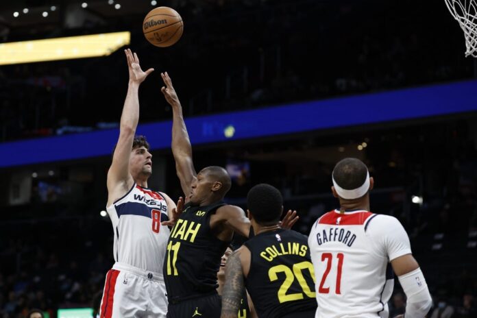 Washington used a 9-0 run late in the first half to pull within five, but Sexton hit a 3-pointer with 2.3 seconds remaining to send the Jazz into the locker room ahead 64-56.