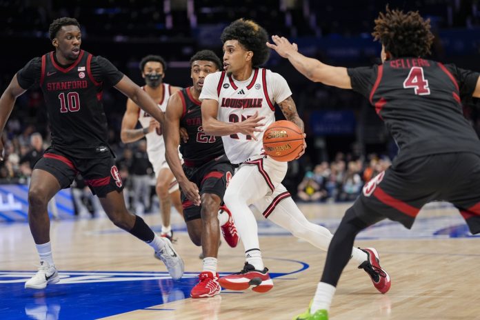 Chucky Hepburn had 20 points, none bigger than a midrange jumper at the buzzer that lifted No. 13 Louisville to a 75-73 win over Stanford in the Atlantic Coast Conference tournament quarterfinals on Thursday in Charlotte, N.C.