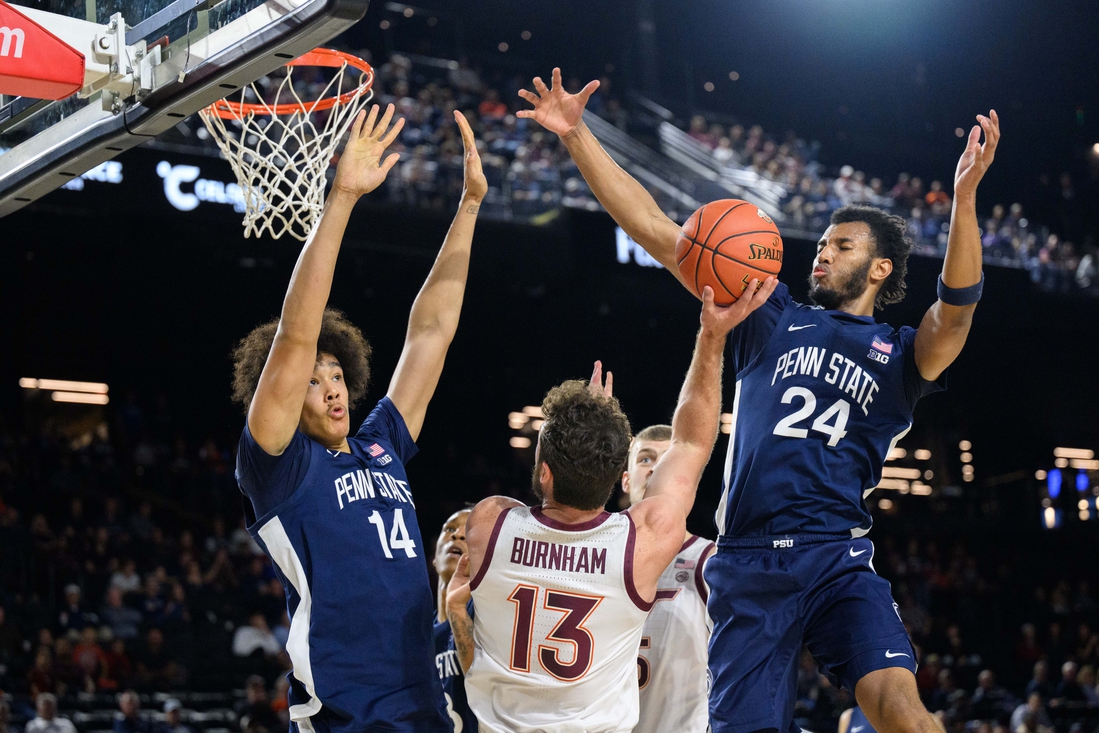 Johnson hit a 3-pointer before following his layup with a steal and slam to widen the Nittany Lions’ lead to 49-33 with 16:42 to play.