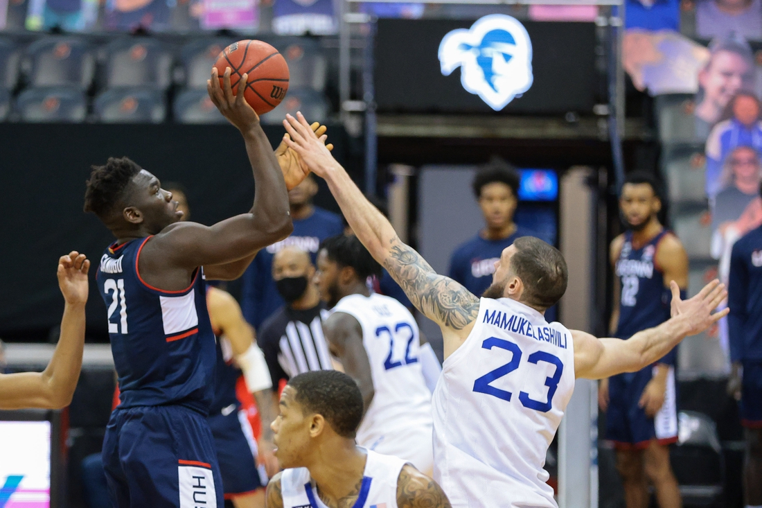K.D. Johnson sank a pair of free throws to cut UConn’s lead to 95-93 in the first overtime. He then took advantage of a Hawkins turnover by making a layup at the other end to tie the game with 3.4 seconds to play.