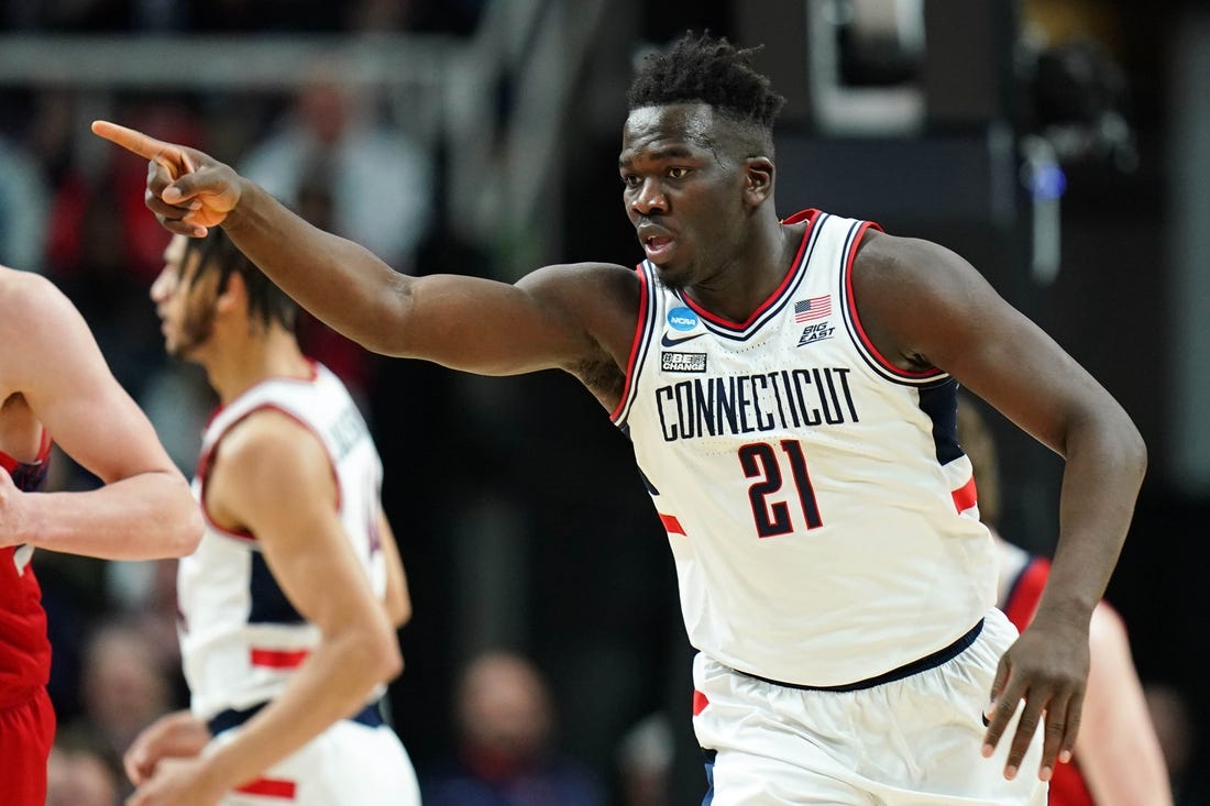 Sanogo made 11 of 16 shots from the floor and both attempts from the free-throw line. He sank 13 of 17 attempts from the floor in a 28-point, 13-rebound performance during the Huskies’ 87-63 romp over 13th-seeded Iona on Friday.