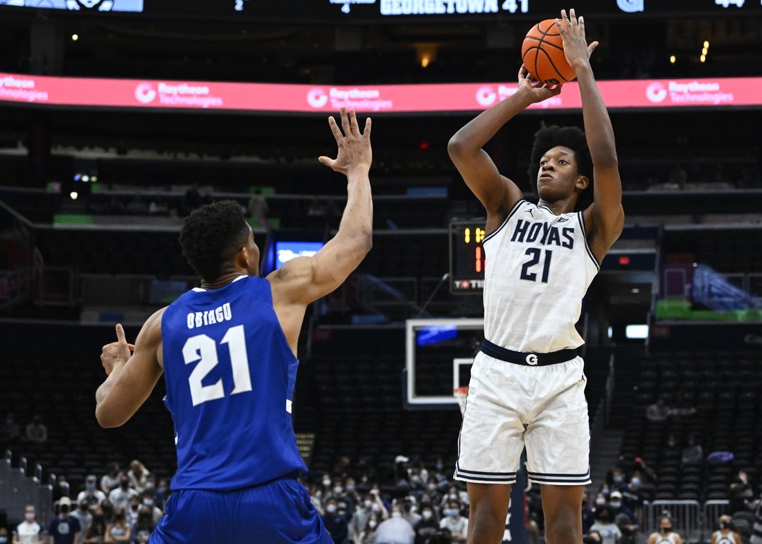 In the frontcourt, Georgetown will count on 7-foot-2 holdover Ryan Mutombo, 6-foot-10 transfer Akok Akok (UConn) and 6-foot-11 Qudus Wahab, who started for the Hoyas’ Big East tournament championship team in 2020-21 and is back after a trying season at Maryland.